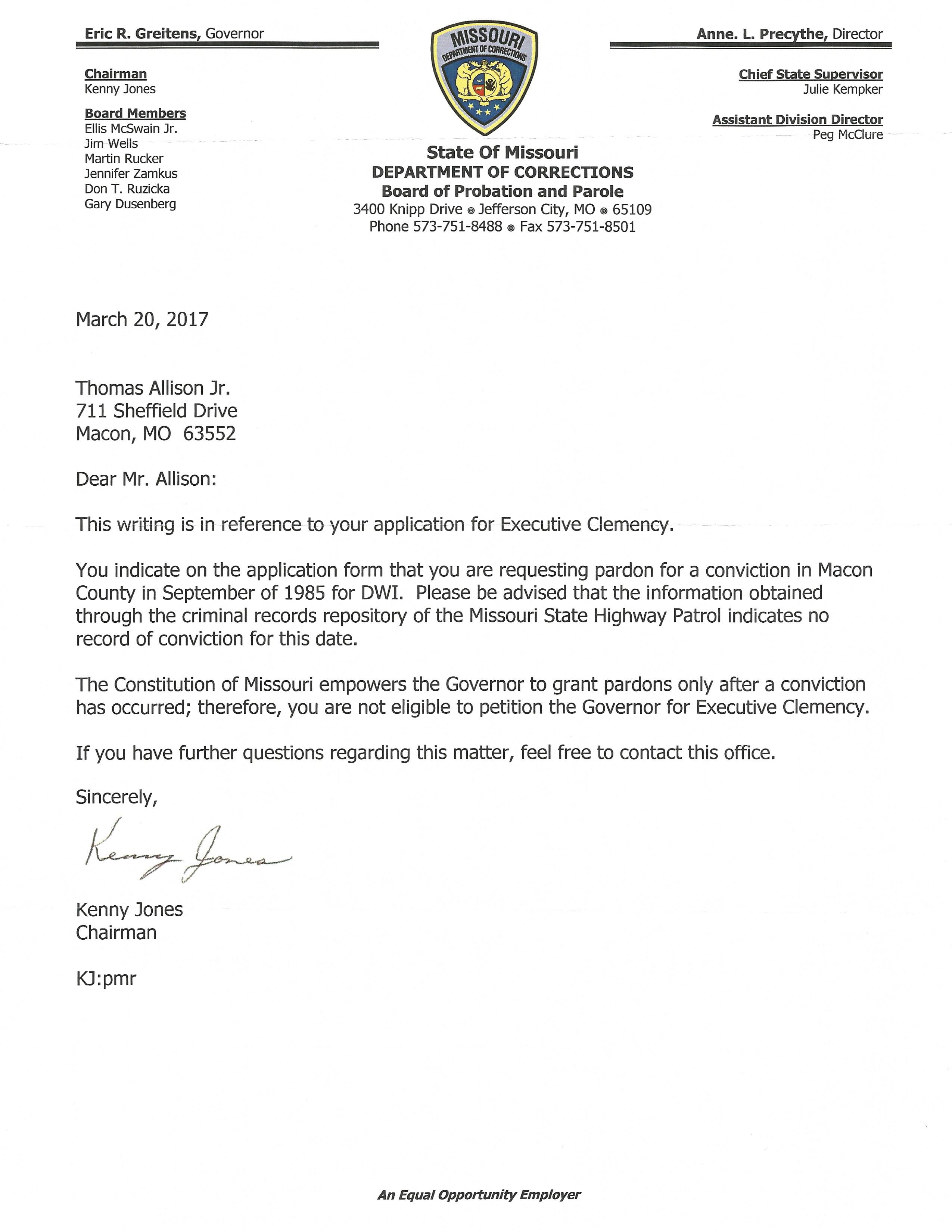 State confirms NO record of conviction for 1985 DWI